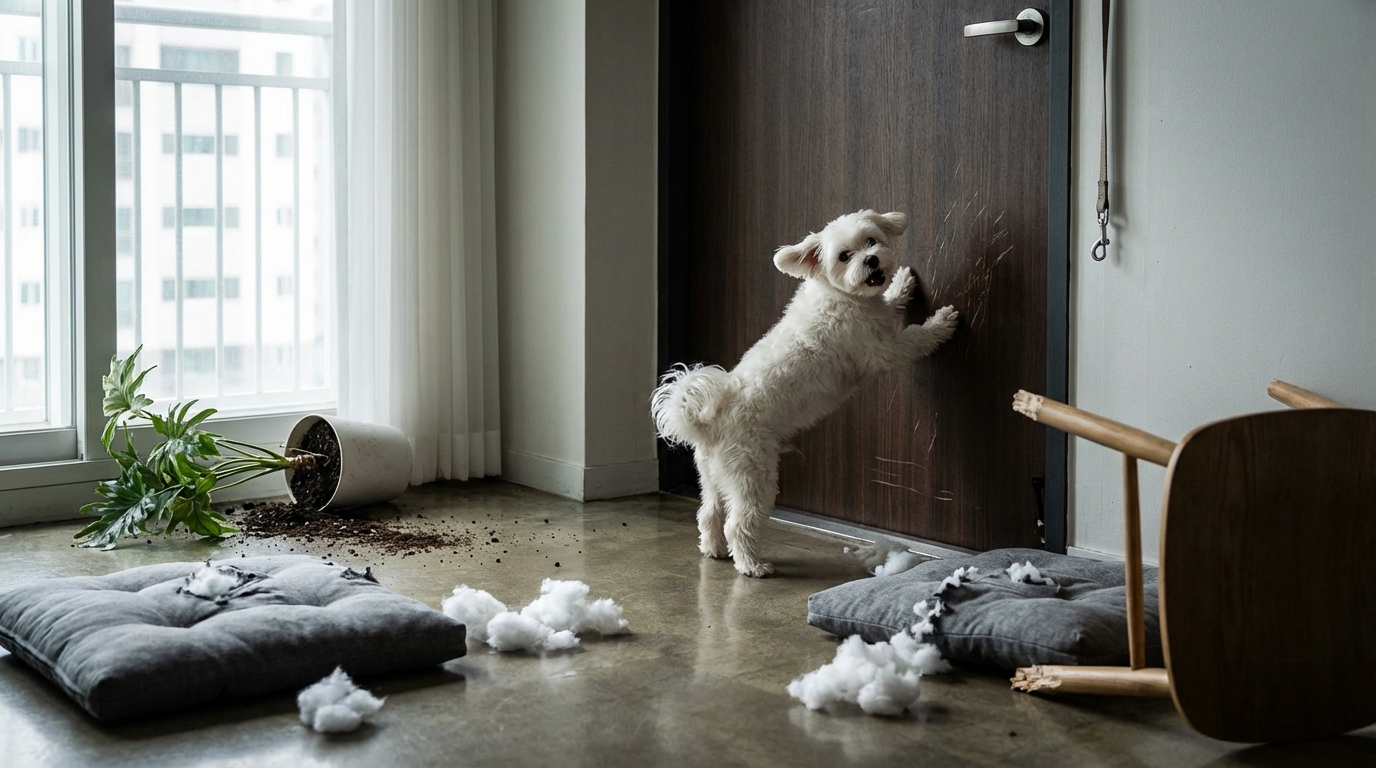 불안 행동은 대개 특정 상황에서 반복됩니다. 혼자 남겨질 때 짖음·하울링, 문 긁기, 파괴, 배변, 과도한 침 흘림, 왔다 갔다 걷기 같은 패턴이 대표적입니다. 반대로 외부 자극(초인종, 공사 소음, 낯선 사람·개)에서 움츠리거나 숨고, 간식을 먹지 못하고, 동공이 커지며 몸이 굳는다면 공포 반응일 수 있습니다. 이때 보호자가 즉시 안아 달래는 방식은 상황에 따라 불안을 강화할 수 있으므로, 먼저 자극을 줄이고 안전한 공간을 제공하는 것이 기본입니다. 분리불안은 ‘지루함’과도 구분이 필요합니다. 보호자 외출 전 준비 동작만으로 불안이 시작되는지, 외출 직후 짧은 시간에 폭발하는지, 귀가 후에도 진정이 늦는지가 중요한 단서입니다. 초기 대응은 과도한 인사·작별 루틴을 줄이고, 혼자 있는 시간을 매우 짧은 단위로 연습하며, 실패가 반복되지 않도록 난이도를 조절하는 방향이 일반적입니다. 문제의 강도가 크면 행동전문가나 훈련사의 체계적 프로그램이 필요합니다.